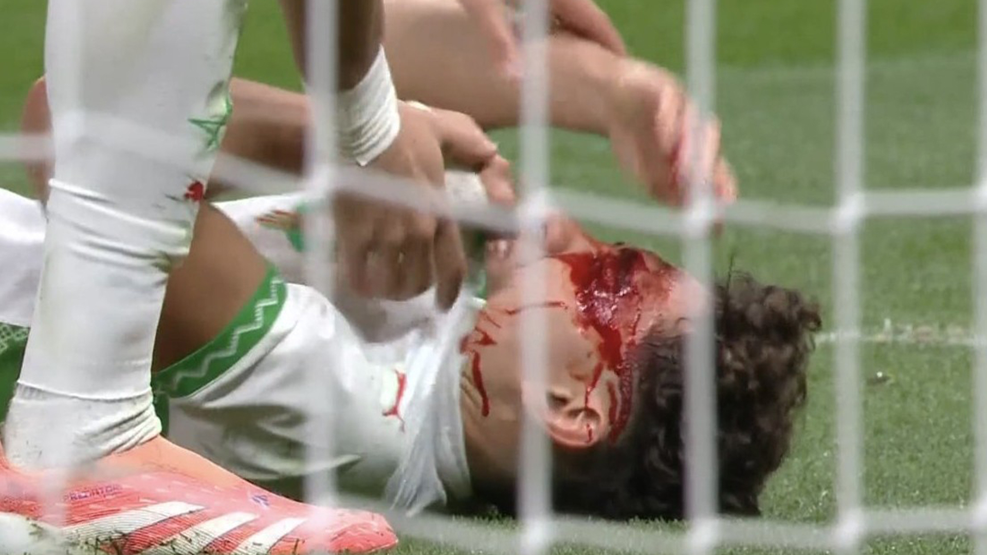غادر النجم المغربي نيل العيناوي مغطى بالدماء بعد اصطدام رأسه مع نجم وست هام في نهائي كأس الأمم الأفريقية.