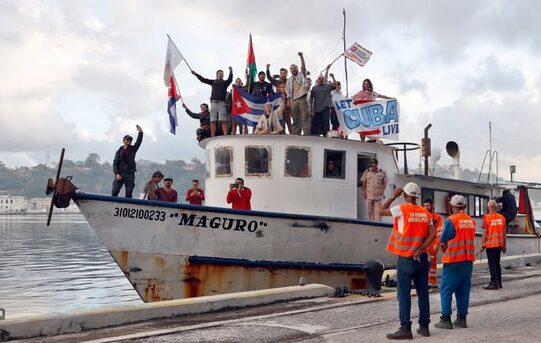 ومع دخول القارب خليج هافانا، عرض الناشطون على متنه لافتات كتب عليها “دعوا كوبا تعيش”، بينما هتف المؤيدون المتجمعون على الشاطئ ضد الحصار الأمريكي المستمر.
